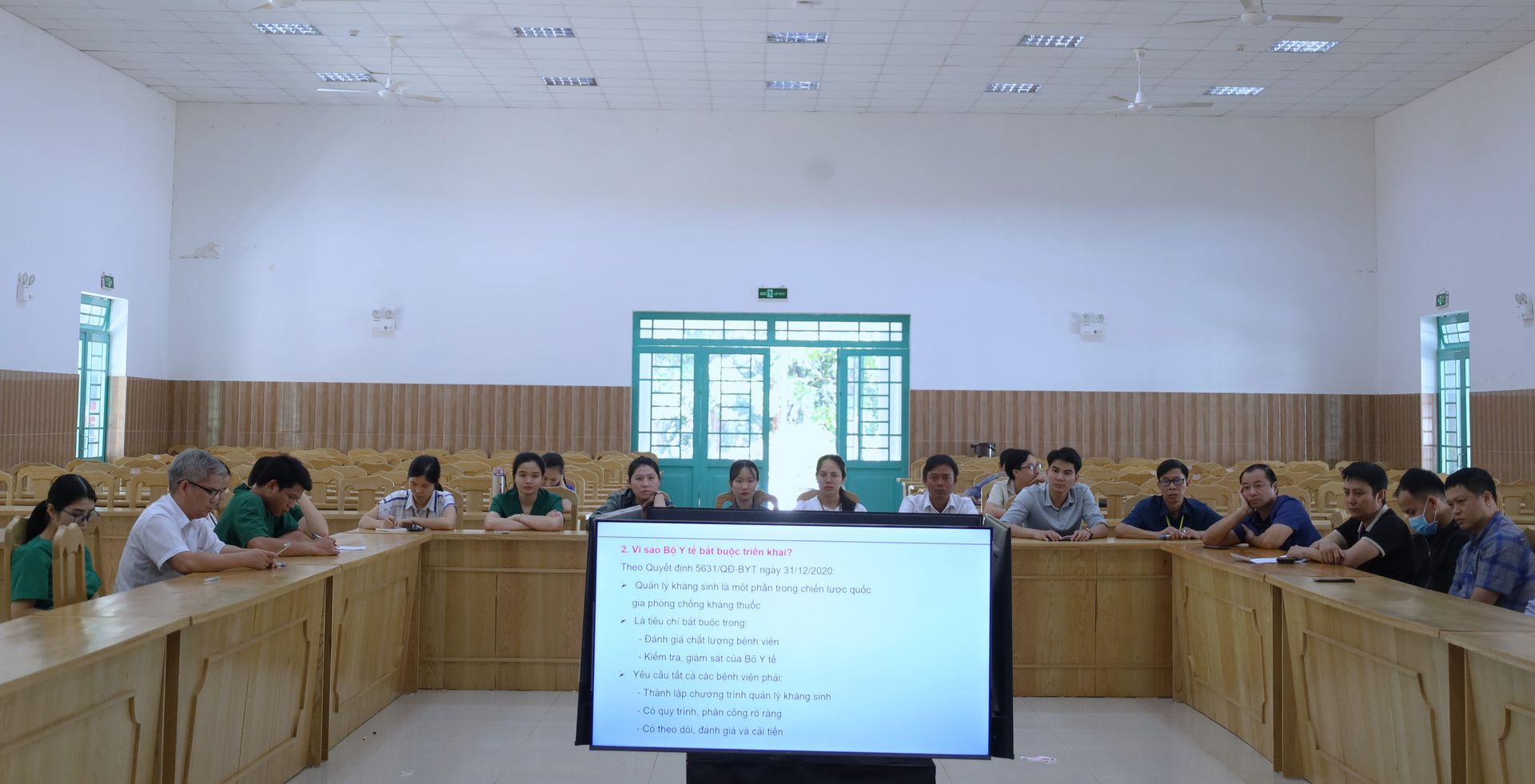 Hình 01: Nhân viên y tế tham dự tập huấn tại Hội trường B, Bệnh viện Nhân Ái