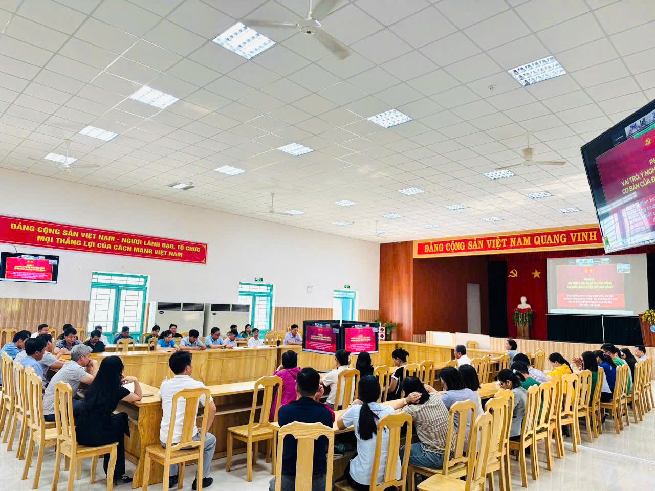 Hình ảnh 01: Cán bộ đảng viên tham dự Hội nghị Trực tuyến