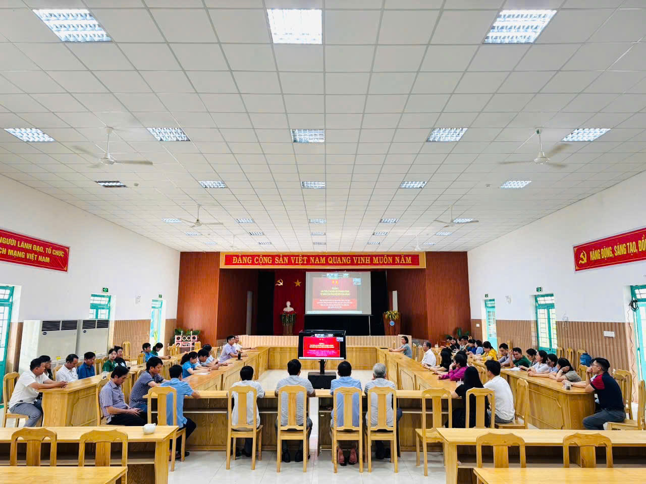 Hình ảnh 01: Cán bộ đảng viên tham dự Hội nghị Trực tuyến