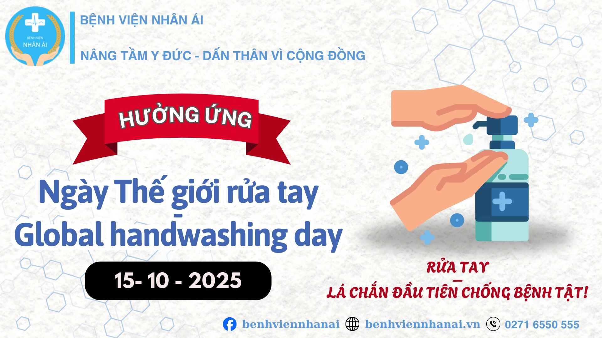 - Ngày Thế giới Rửa tay (15/10): "Rửa Tay - Chặn Đầu Tiên Chống Bệnh Tật!" kèm hướng dẫn 6 bước rửa tay chuẩn WHO.