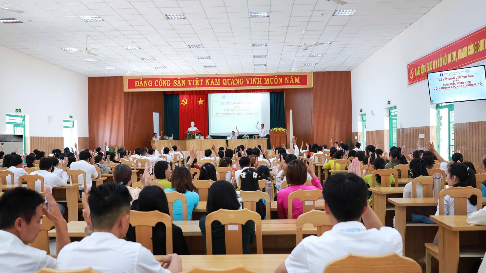Hội nghị VC-NLĐ là dịp quan trọng để tập thể viên chức, người lao động Bệnh viện cùng nhìn lại những kết quả đã đạt được trong năm 2025, từ đó thẳng thắng chỉ ra những tồn tại, hạn chế cũng như góp ý, đề xuất những giải pháp nhằm nâng cao hiệu quả hoạt động của BV trong năm 2026; đồng thời phát huy quyền làm chủ của viên chức, người lao động trong việc tham gia quản lý, xây dựng BV ngày càng phát triển vững mạnh, quyết tâm phấn đấu thực hiện hoàn thành nhiệm vụ được giao. Xây dựng Bệnh viện Nhân Ái ngày càng ổn định – hiện đại – chuyên nghiệp – nhân văn, đáp ứng yêu cầu nhiệm vụ trong giai đoạn mới.